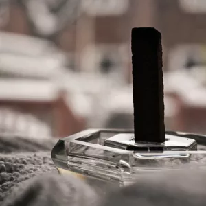 To extinguish the Oud Stick, simply turn the stick around and place the lit end into the glass holder. The smoke will automatically cease.